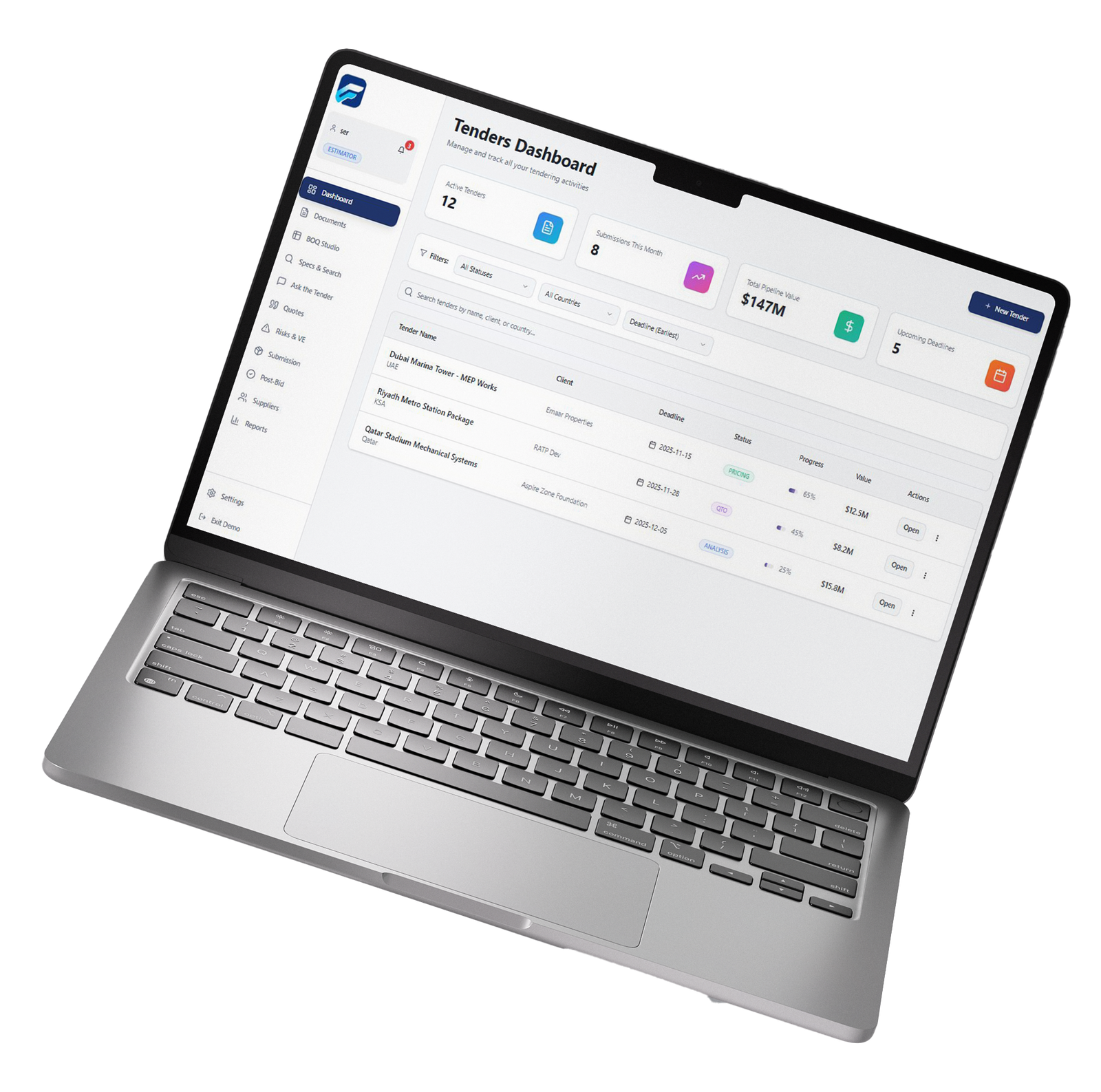 BidFlow is designed as an AI-native tendering co-pilot rather than just a digital filing cabinet. Autonomous AI agents work in parallel across different steps of the process (documents, BOQ, quotes, risks) to reduce bottlenecks and keep estimators focused on high-value decisions.